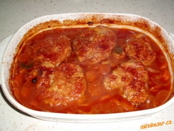 Potřeme pekáček máslem, pak na něj poklademe cibuli a česnek, mrkev a koření. Vepřové plátky potřeme směsí hořčice s utřeným česnekem a naklademe na cibuli a mrkev. Nakonec je zalijeme kečupovou směsí. Vepřové plátky na pivu dáme péct na 180 °C do trouby a asi po dvaceti minutách promícháme. Ničím nepodléváme. Asi za 50 minut až hodinu je hotovo.